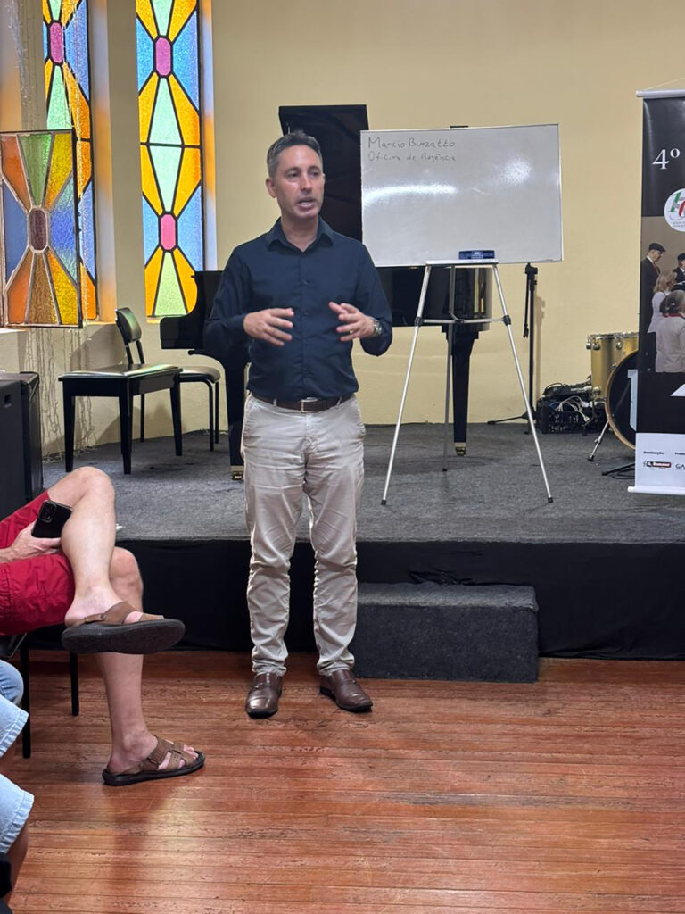Com oficinas formativas, apresentações corais e encontros abertos ao público, o evento promoveu interação entre gerações e valorizou a arte coletiva. Entre as atividades de destaque esteve a apresentação da Banda Municipal Cinquentenário de Farroupilha, que participou da abertura no dia 26 de novembro, no Centro de Convivência dos Idosos São José. Sob regência do maestro Rodrigo Ziliotto, a tradicional formação em estilo “Big Band” animou o público em uma tarde marcada pela emoção e pela participação ativa dos presentes. Ao longo da programação, diversos coros e músicos regionais compartilharam o palco, unindo repertórios, estilos e histórias. Os grupos revisitaram canções italianas, obras folclóricas e arranjos contemporâneos, reforçando o sentimento de pertencimento e a força da produção musical local.