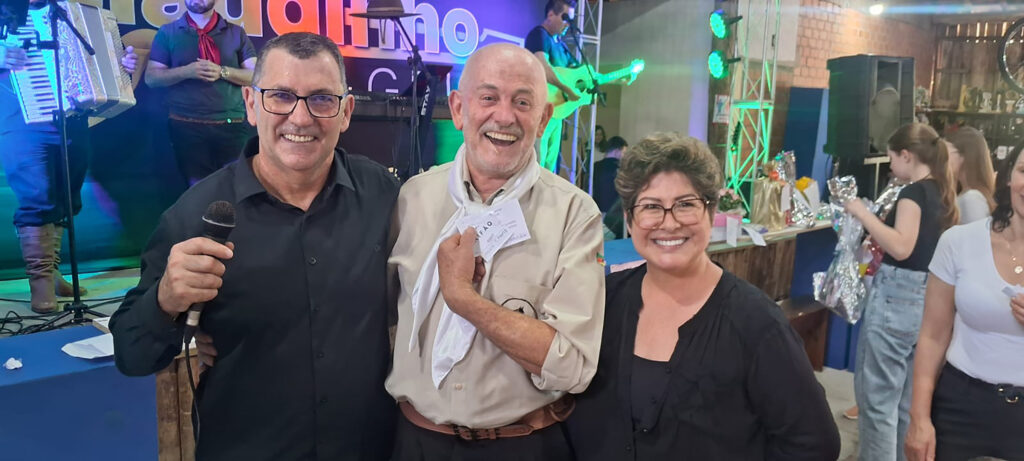 - Entre os premiados, dois novos assinantes do jornal O Farroupilha: Simone Herzog e Quirino Levis moradores do bairro e que participaram do almoço.