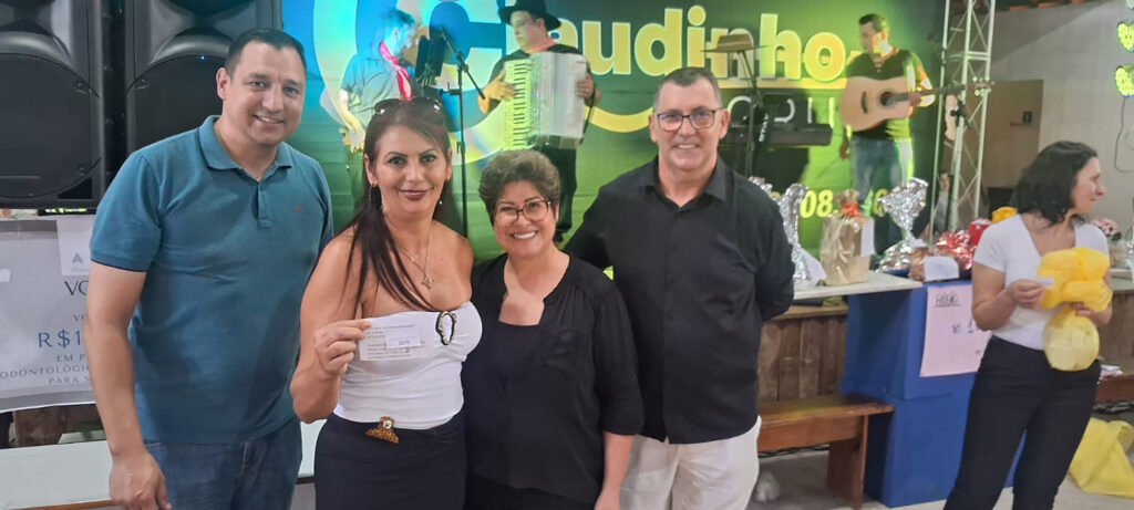 A rifa com dezenas de prêmios doados pelo comércio e empresários do bairro e do município também mostrou teve receptividade para a iniciativa da diretoria da entidade. As fotos registram integrantes da diretoria, a presidente Sandra Picollo e Claudemir Gulden que foi o “mestre de cerimônias” da programação.