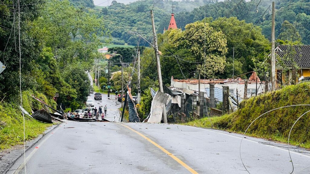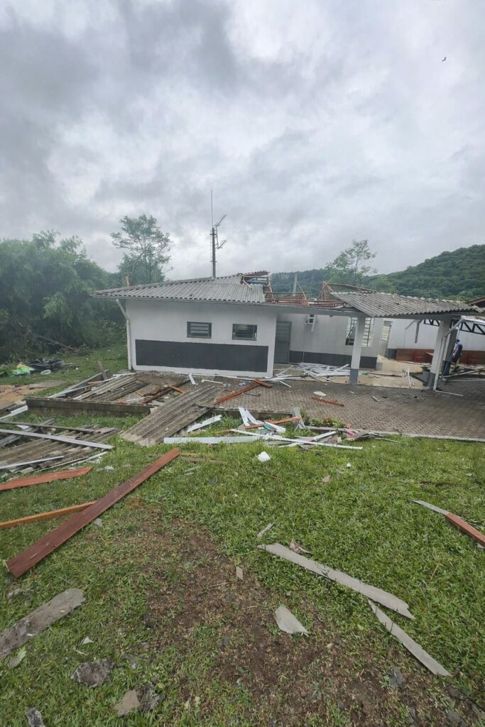 Houve também a queda de uma árvore na Rua Pedro Antonello, no acesso ao bairro 1º de Maio, situação já equacionada pelas equipes do pelo Corpo de Bombeiros. A empresa Ecofar prestou auxílio realizar a retirada dos galhos para a liberação da passagem de veículos e pedestres no local. Outra árvore caiu em uma estrada na comunidade de São Luiz. No bairro Imigrante, as equipes registraram destelhamento de uma residência e em de um prédio residencial, na rua Luis Sebben.