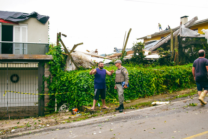 Após o forte temporal de chuva e fortes ventos que atingiu Farroupilha no início da tarde desta terça-feira, 23 de dezembro, o titular da 9° Coordenadoria Regional de Proteção e Defesa Civil de Caxias do Sul, major Marcelo Almeida de Souza, esteve nos locais onde avonteceram danos causados pelo mau tempo. Ele esteve acompanhado de autoridades municipais e pelo coordenador da Defesa Civil Municipal, Fávio de Arruda Mezadri, além de responsáveis pelas forças de segurança municipais, como o Corpo de Bombeiros e a Brigada Militar.