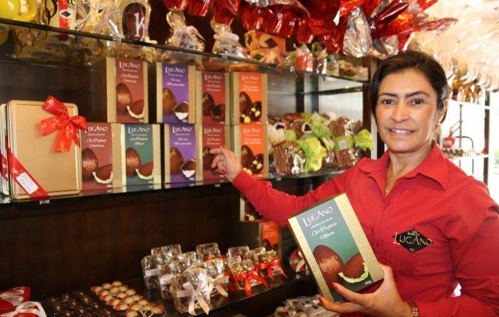 A proprietária explica que por acreditar que o chocolate seja o produto mais vendido, a Lugano desenvolveu uma linha de ovos trufados com sabores e embalagens diferenciadas, além de cestas e presentes diversos. A loja abrirá no próximo domingo, dia 1º, das 14 às 18 horas e na semana que antecede a Páscoa das 9 às 19 horas, sem fechar ao meio-dia. Estamos com a promoção Ovo Gigante. Quem comprar acima de R$ 100 concorre a um ovo de 3,200 kg.