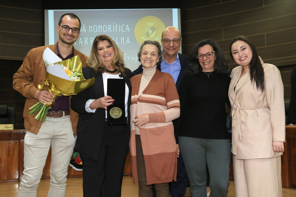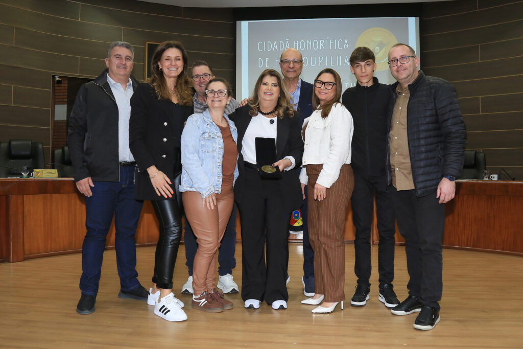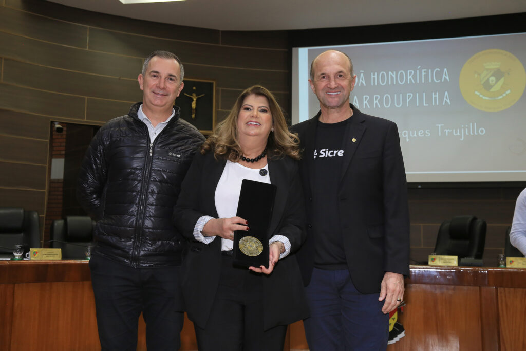 Movida pelas ações voluntárias em entidades como CDL Mulher, Rotary da Farroupilha, Liga de Combate ao Câncer, Clube de Mães Amigas da Escola, Elas por Elas Serra e Sicred Serrana, além de ser uma mulher empreendedora, Iolanda ocupou a tribuna com uma fala emocionada e repleta de gratidão, especialmente ao marido José Carlos Trujillo.