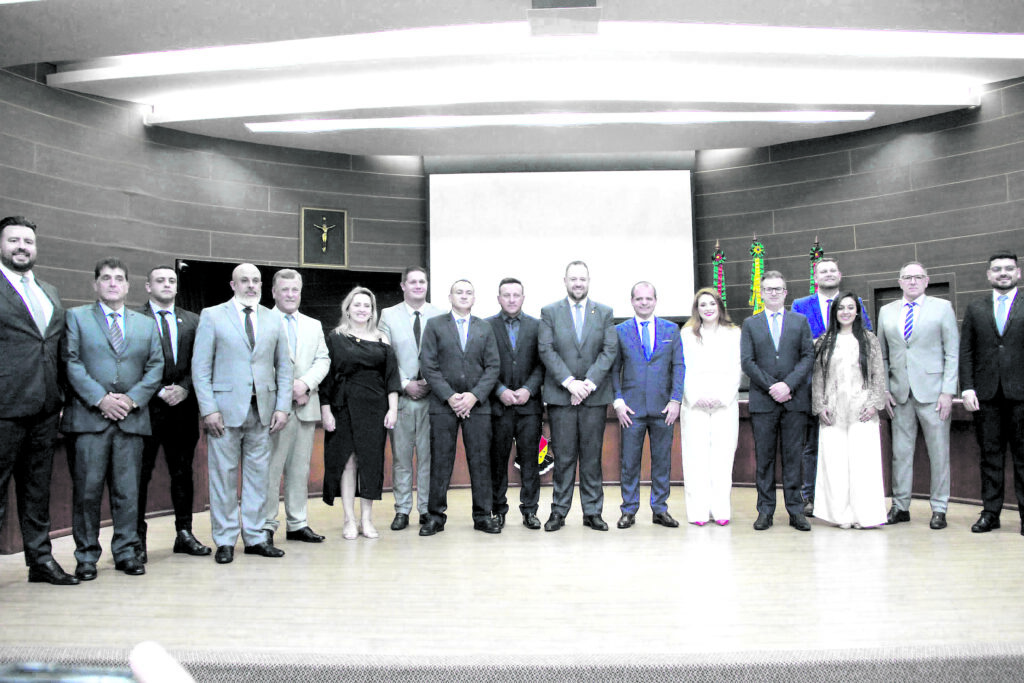 Todos fizeram o juramento de posse e elegeram a Mesa Diretora para 2025, cujo presidente, eleito por unanimidade, foi o vereador Jorge Cenci, além dos vices: Maurício Bellaver e Argídio Schmitz e dois secretários: Davi de Almeida e Francyelle Bonaci.