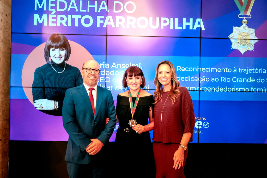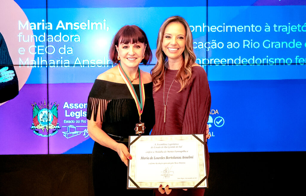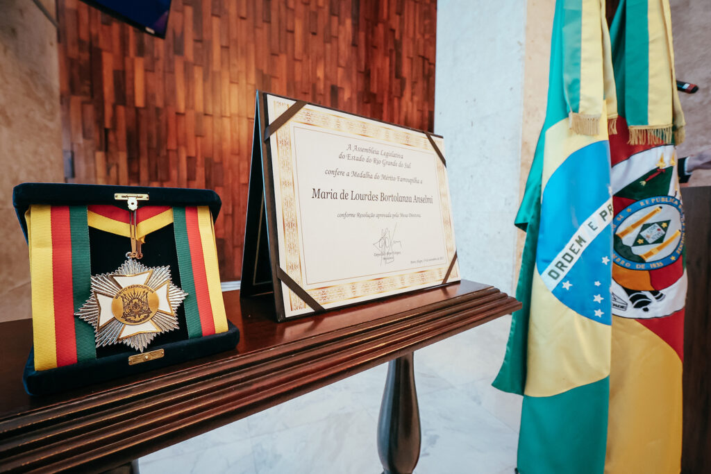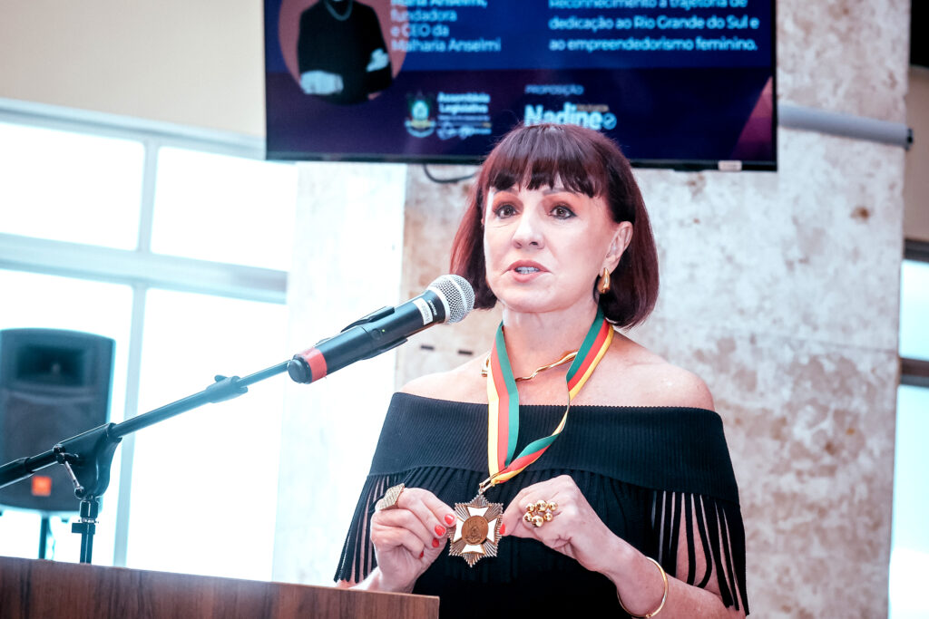 A Assembleia Legislativa do Rio Grande do Sul concedeu a Medalha do Mérito Farroupilha, maior honraria do parlamento gaúcho, à empresária Maria Anselmi. A proposição foi apresentada pela deputada estadual Delegada Nadine Tagliare Anflor. A solenidade ocorreu na quarta-feira desta semana, 19 de novembro, no Salão Júlio de Castilhos, na Assembleia Legislativa.