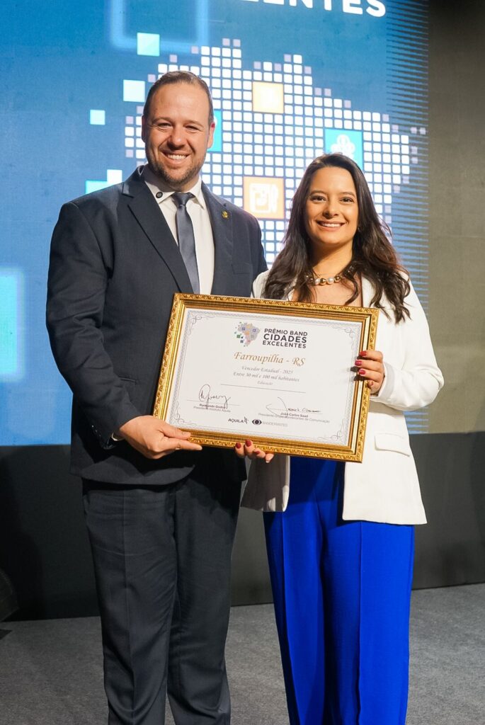 A educação de Farroupilha recebeu mais um reconhecimento nesta quarta-feira, 26 de novembro. Em Porto Alegre, o município foi anunciado no primeiro lugar do Prêmio Band Cidades Excelentes 2025, na categoria Educação, entre cidades de 30 mil a 100 mil habitantes. A premiação foi criada para incentivar, reconhecer e valorizar boas práticas de gestão pública que transformam a realidade das comunidades e melhoram os serviços públicos. A iniciativa é do Grupo Bandeirantes de Comunicação, em parceria com o Instituto Aquila.