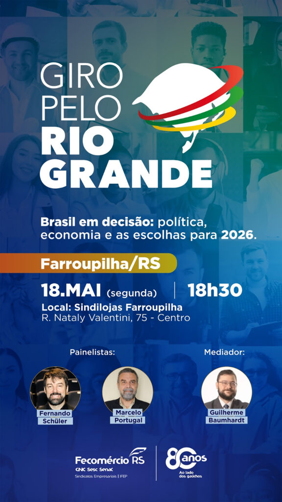 Com o tema “Brasil em decisão: política, economia e os caminhos para 2026”, o evento propõe um debate qualificado sobre os caminhos do País rumo a 2026, reunindo nomes reconhecidos no cenário nacional e estadual. Entre os painelistas estão o cientista político Fernando Schüler, professor e pesquisador do Insper, e o economista Marcelo Portugal, professor titular da UFRGS. A mediação será conduzida pelo jornalista Guilherme Baumhardt, profissional com ampla trajetória em veículos de comunicação e cobertura de temas nacionais e internacionais.