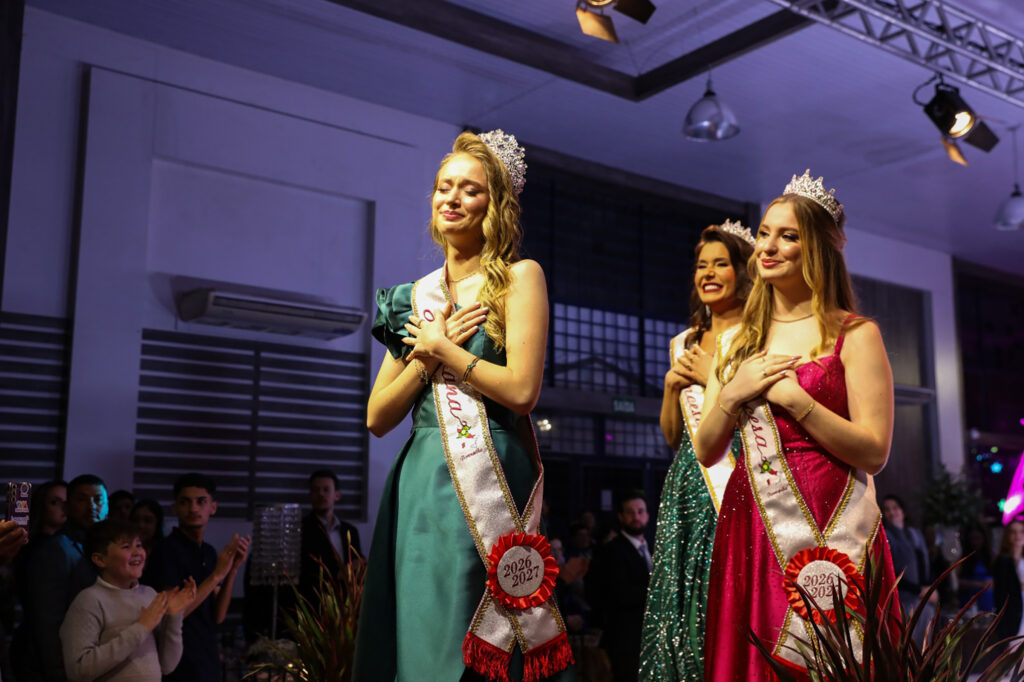 O município conheceu, na noite de 8 de novembro, seu novo trio de soberanas. Daiane Girelli, de 22 anos, foi eleita rainha, ao lado das princesas Ana Luiza Sgarbi, 19 anos, e Cinara Bogo, 31. A cerimônia, marcada por emoção e elegância, lotou o Centro de Eventos Mário Bianchi e confirmou a força feminina que representa o município. A escolha foi o ponto alto de uma caminhada longa.