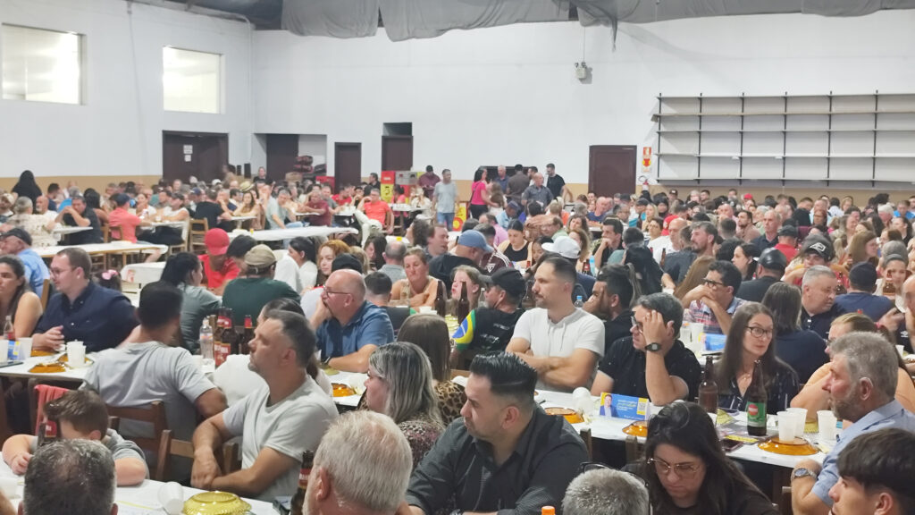 Centenas de pessoas no Salão do Bairro Bela Vista sendo a maior concentração política do ano com a participação popular em Farroupilha
