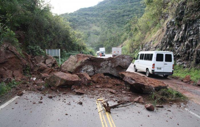 Rocha caiu sobre a rodovia, na altura no km 44, em Sete Colônias. Trânsito que havia sido parcialmente interditado foi liberado por volta das 11h30min