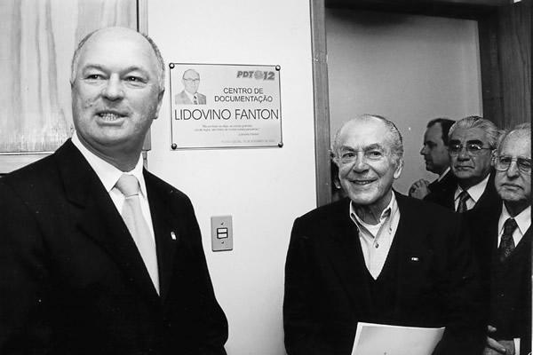 Ele foi um dos fundadores do PDT junto com Leonel Brizola e entre as dezenas de homenagens que já recebeu, está o nome do centro de documentação da sede do PDT em Porto Alegre, que foi inaugurado com a presença do próprio Brizola e do sobrinho de Lidovino, Fernando Oscar Fanton.