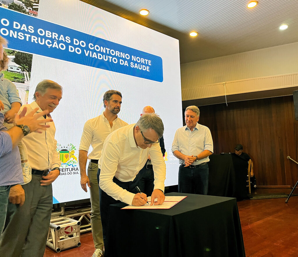 Solenidade na segunda-feira, dia 16, teve a presença do governador Eduardo Leite. Projeto prevê a duplicação de 10,9 quilômetros da ERS-122, entre o chamado “viaduto torto” e a saída para Flores da Cunha