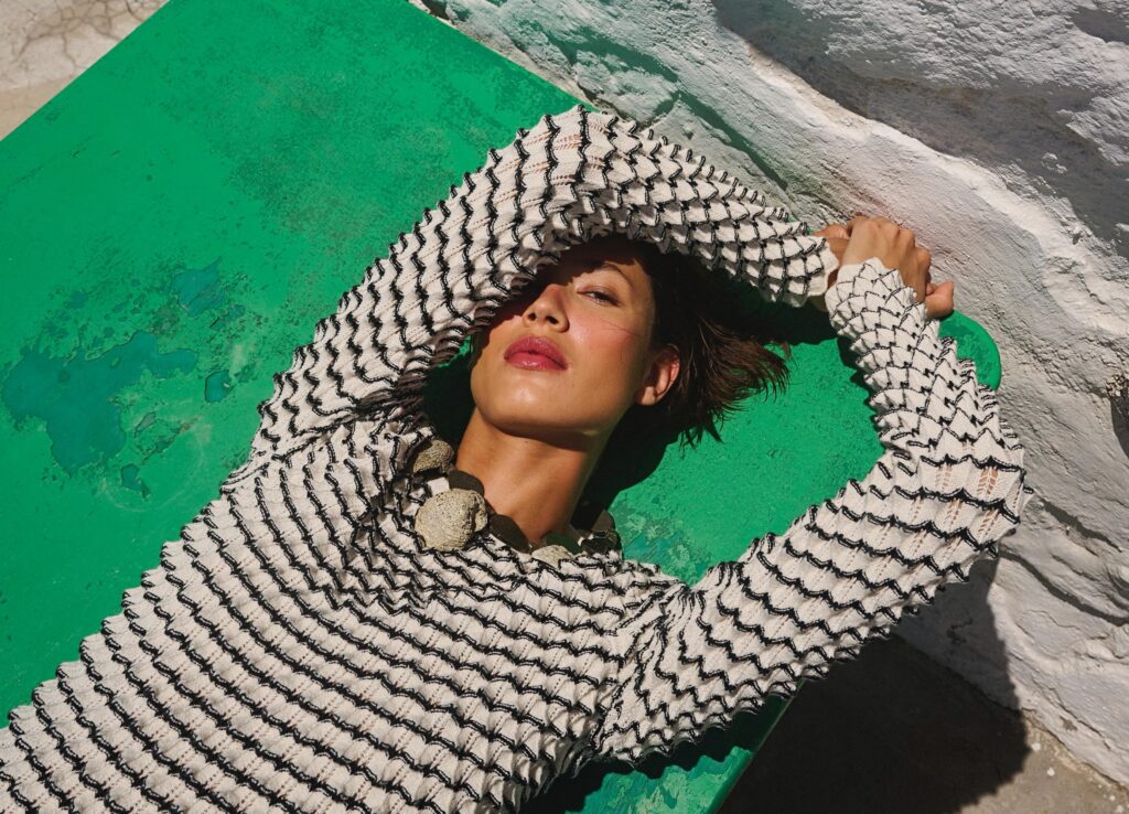 O local utilizado para as fotos da coleção também conversa com o intuito de conectar tecidos quentes ao frescor litorâneo. A ilha de Lanzarote, na Espanha, valoriza a atmosfera de um espaço que remete ao surrealismo, desejo buscado pela alma de artista de Sandra Anselmi que une visualmente natureza, expressão e imaginação.