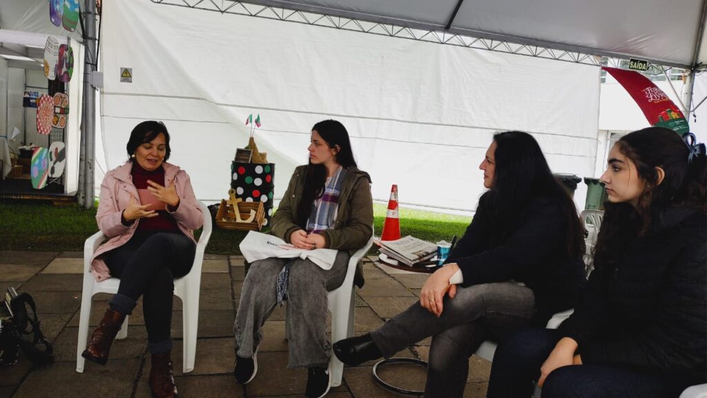 Dentro da programação da 34ª Feira do Livro, a jornalista do O Farroupilha, Claudia Iembo, realizou neste sábado, 8 de novembro, um bate papo no qual abordou a criação da escrita de crônicas e de textos jornalísticos. Ela falou sobre a diferença entre um texto jornalístico e um texto de uma crônica. “O texto jornalístico é informativo, mais objetivo. Já o texto da crônica deve ter um olhar mais abrangente, no qual a percepção do autor permite explorar os sentimentos envolvidos no fato que está sendo relatado”, explicou.