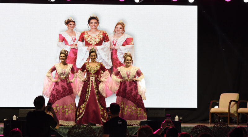 Durante a cerimônia de lançamento da próxima edição da “La Prima Vendemmia” foram apresentados os trajes oficiais das soberanas. Em tons de vinho, os vestidos remetem à nobreza da uva que inspira a festa. O brilho das pérolas destaca os 30 anos de dedicação à La Prima Vendemmia, enquanto o crochê evidencia o trabalho manual que preserva a história e a delicadeza das tradições locais.
