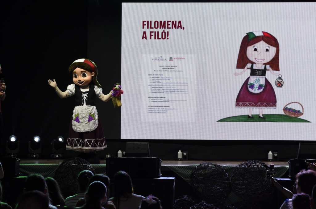 - A identidade visual de 2026 traz um cartaz concebido para dialogar diretamente com o tema da vindima. Inserida no mapa do Rio Grande do Sul, por ser uma das mais tradicionais vindimas do Estado, a arte reúne símbolos como a uva, e o Filó, expressão da imigração marcada por canto e devoção.