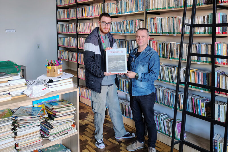 Bibliotecas públicas de 35 cidades foram visitadas pessoalmente por Fabiano Mazzotti para a entrega de livros sobre a história da Fenavinho