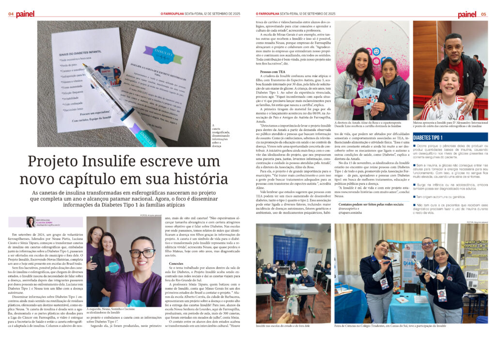 Iniciativas que melhoram a vida das pessoas merecem destaque, assim como profissionais e veículos que se dedicam a divulgá-las! O Jornal O Farroupilha acaba de conquistar o primeiro lugar no prêmio ADI/Excelência Editorial, por meio da jornalista Claudia Iembo, que produziu a reportagem “Projeto Insulife escreve um novo capítulo em sua história”. Publicada na edição de 12 de setembro, a matéria divulgou o primeiro ano do projeto que tem levado mais informações sobre a Diabetes Tipo 1 às escolas do município e de fora dele, abraçando sustentabilidade e responsabilidade social.