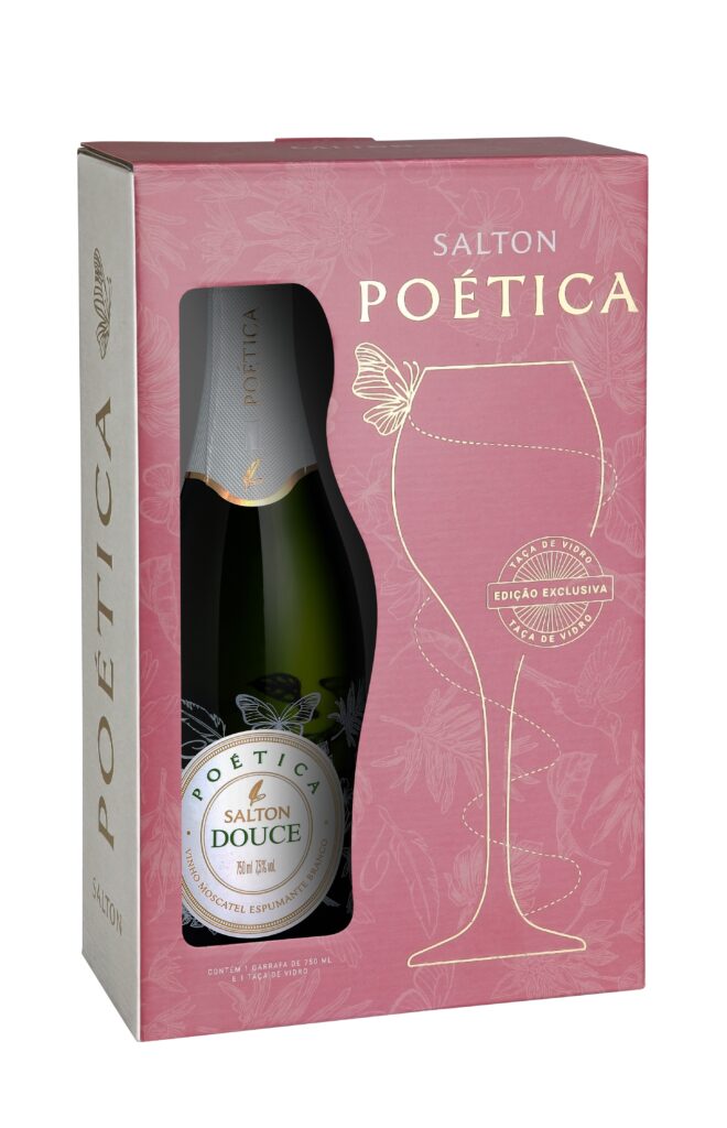 Outra opção é o kit Salton Poética + taça, que traz um dos rótulos mais recentes da vinícola e que já conquista o público pela delicadeza, tanto na apresentação, quanto no paladar. Os kits permitem escolher diferentes rótulos das linhas Ouro e Poética, ambas entre os grandes sucessos de venda da Salton. Os produtos estão à venda nas lojas físicas da Salton.