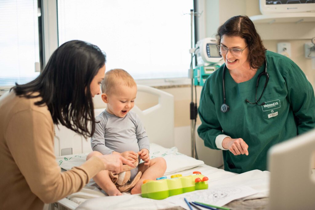- Tanto na internação quanto na UTI, o atendimento é realizado por uma equipe multiprofissional especializada em pediatria.